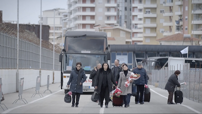 Katër i Radës was the first boat that sank in a naval blockade against migration flows. Now it is a monument for global migration established by the same authority that ordered its sinking. During the civil war in Albania more and more people were seeking a way out. On 28 March 1997, at the port of Vlorë, Albania, 120 people boarded the vessel Katër i Radës bound for Italy. In the Otranto Canal, the Italian navy warship Sibilla intercepted the Albanian ship, using military manoeuvres. The military action was part of Operation White Flags (operazione Bandiere Bianche), by mutual agreement of the Italian and Albanian state, which gave the Italian navy permission to patrol the entire Otranto Canal and prevent Albanians from escaping the country. The Albanian boat sank, causing the death of 81 people, including women and children; justice for this still has not been done. In the film, four female voices interweave a polyphonic narration of the story, asking questions ignored by the media and the court. The relatives of the victims perform a voyage by crossing the Mediterranean Sea following the same route. During the voyage they reexamine the traces of the event and the transformation of the shipwreck from evidence into a context-free sculpture. In front of the distorted shipwreck, a restorative act brings back the missing memory.
